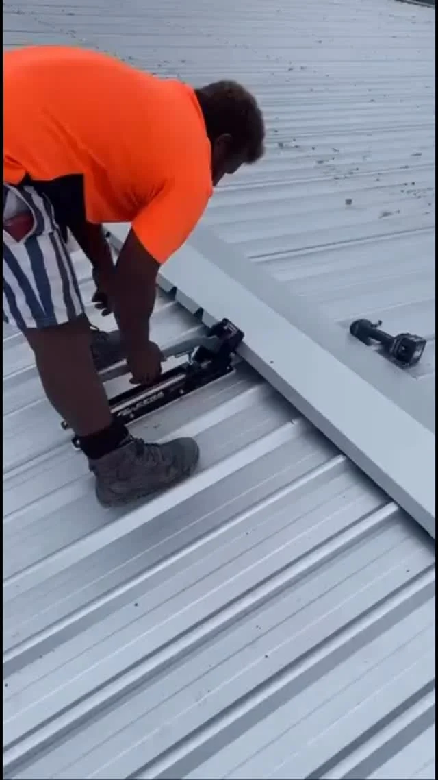 We then use the EERA trim notcher to cut out the R panel rib profile on our trim break which then weatherproofs the roof. “ ”